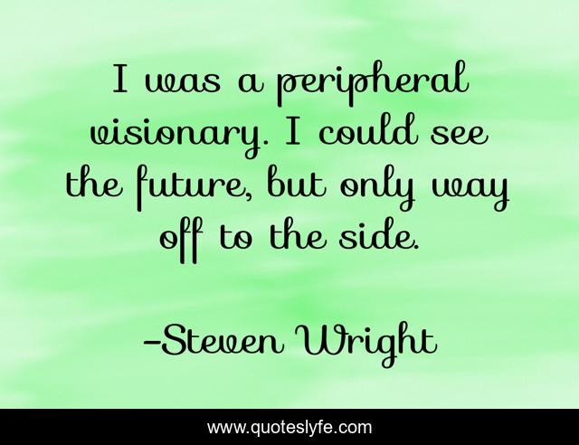 This page presents the quote "I was a peripheral visionary. I could see the future, but only way off to the side.". Author of this quote is Steven Wright. This quote is about see, visionary, way,.