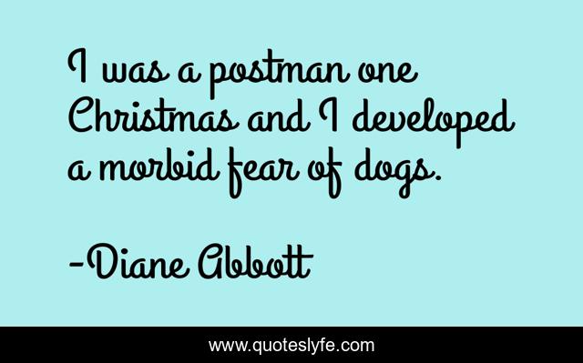 This page presents the quote "I was a postman one Christmas and I developed a morbid fear of dogs.". Author of this quote is Diane Abbott. This quote is about fear, dogs, postman,.