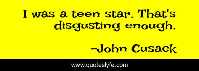 This page presents the quote "I was a teen star. That's disgusting enough.". Author of this quote is John Cusack. This quote is about enough, star, disgusting,.