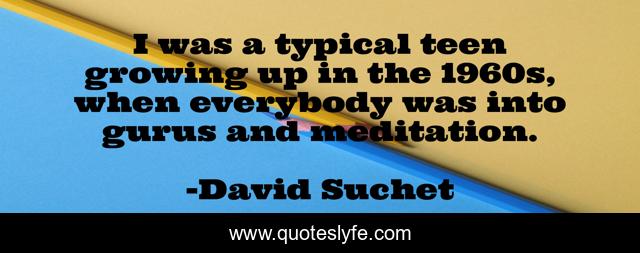 This page presents the quote "I was a typical teen growing up in the 1960s, when everybody was into gurus and meditation.". Author of this quote is David Suchet. This quote is about meditation, growing up,.