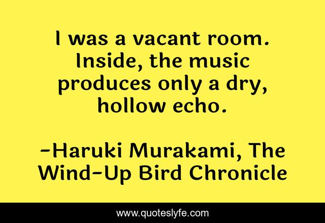 This page presents the quote "I was a vacant room. Inside, the music produces only a dry, hollow echo.". Author of this quote is Haruki Murakami, The Wind-Up Bird Chronicle. .