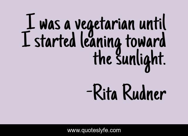 This page presents the quote "I was a vegetarian until I started leaning toward the sunlight.". Author of this quote is Rita Rudner. This quote is about vegetarian, sunlight,.