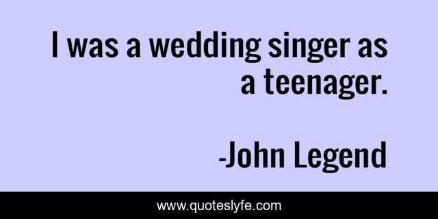This page presents the quote "I was a wedding singer as a teenager.". Author of this quote is John Legend. This quote is about singer, teenager,.