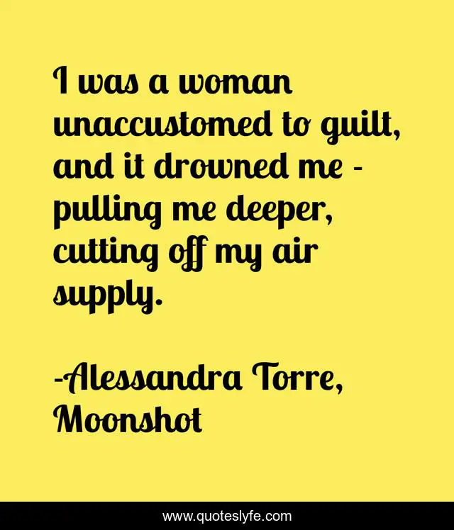 This page presents the quote "I was a woman unaccustomed to guilt, and it drowned me - pulling me deeper, cutting off my air supply.". Author of this quote is Alessandra Torre, Moonshot. .