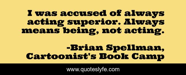 This page presents the quote "I was accused of always acting superior. Always means being, not acting.". Author of this quote is Brian Spellman, Cartoonist's Book Camp. This quote is about conceit, double-entendre, humor, arrogance,.