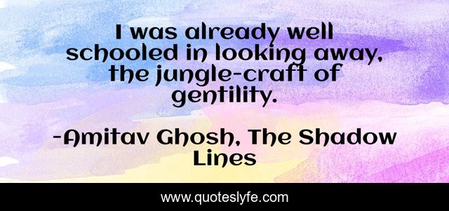 This page presents the quote "I was already well schooled in looking away, the jungle-craft of gentility.". Author of this quote is Amitav Ghosh, The Shadow Lines. .