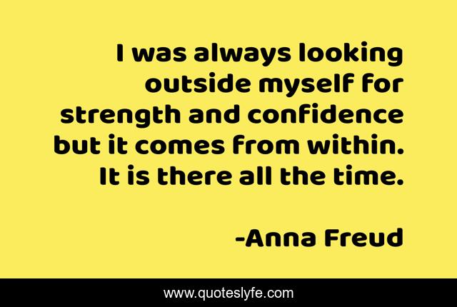 This page presents the quote "I was always looking outside myself for strength and confidence but it comes from within. It is there all the time.". Author of this quote is Anna Freud. This quote is about self, acceptance,.