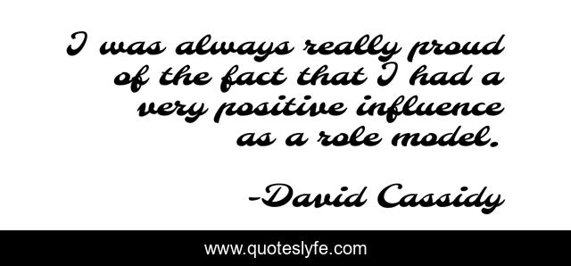 This page presents the quote "I was always really proud of the fact that I had a very positive influence as a role model.". Author of this quote is David Cassidy. This quote is about proud, influence, role model,.