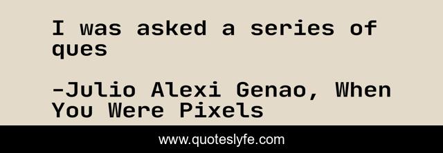 This page presents the quote "I was asked a series of ques". Author of this quote is Julio Alexi Genao, When You Were Pixels. .