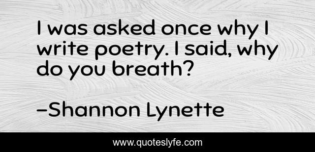 This page presents the quote "I was asked once why I write poetry. I said, why do you breath?". Author of this quote is Shannon Lynette. This quote is about poetry, writing,.