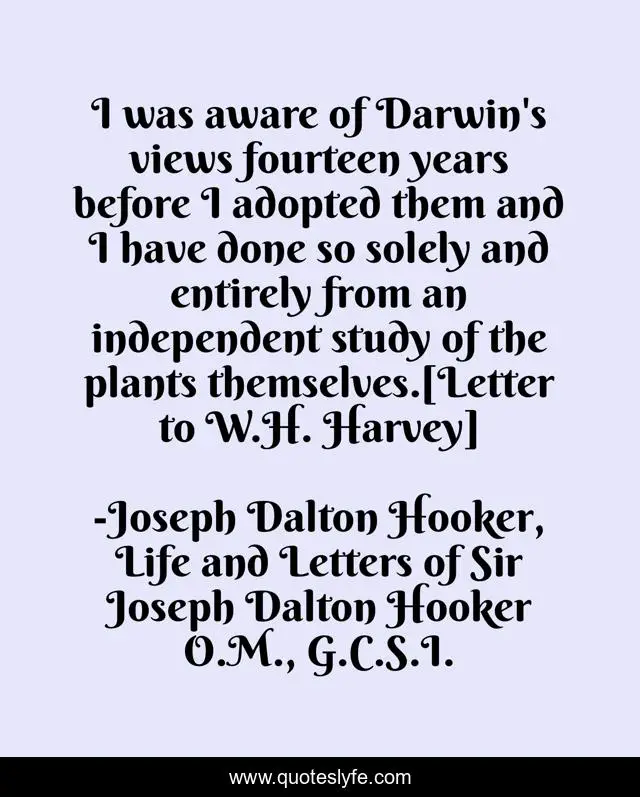 "Joseph Dalton Hooker, Life and Letters of Sir Joseph Dalton Hooker O.M., G.C.S.I. Quotes." Quoteslyfe.com, 2025. Fri. 05 Dec. 2025. <https://www.quoteslyfe.com/quote/I-was-aware-of-Darwin-s-views-178317>.