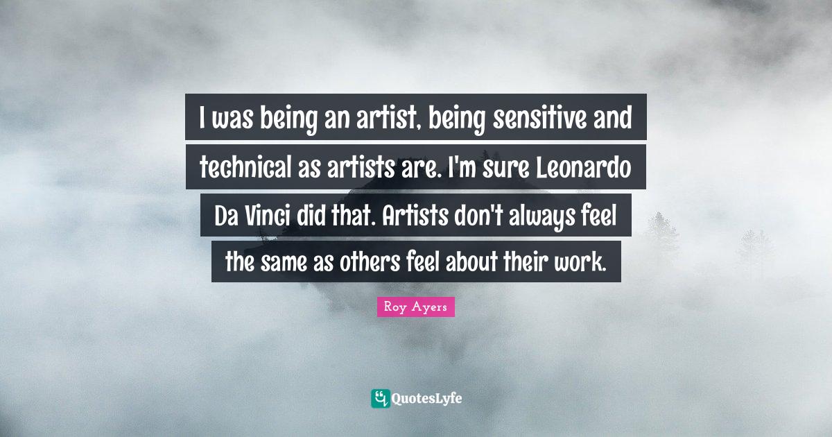 "Roy Ayers Quotes." Quoteslyfe.com, 2026. Thu. 19 Mar. 2026. <https://www.quoteslyfe.com/quote/I-was-being-an-artist-being-sensitive-1025600>.