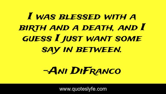 This page presents the quote "I was blessed with a birth and a death, and I guess I just want some say in between.". Author of this quote is Ani DiFranco. This quote is about blessed, birth,.