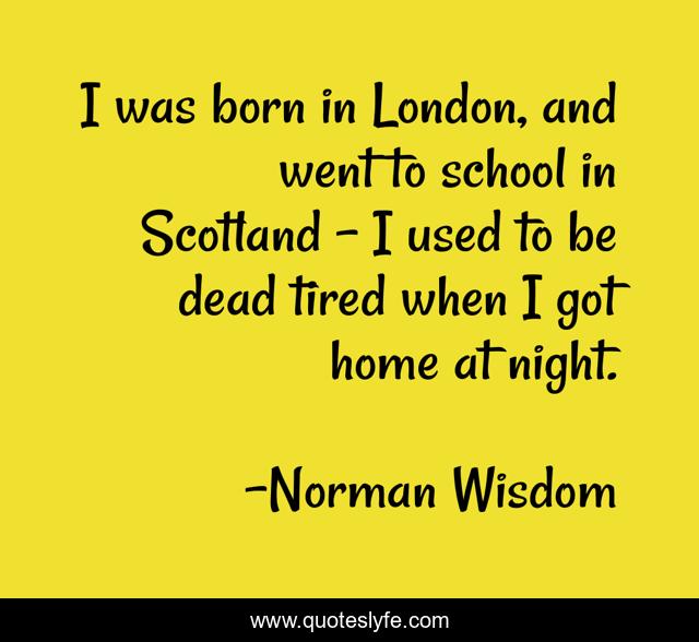 This page presents the quote "I was born in London, and went to school in Scotland - I used to be dead tired when I got home at night.". Author of this quote is Norman Wisdom. This quote is about school, tired, night,.