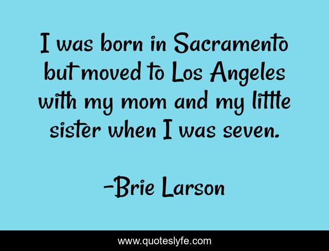 This page presents the quote "I was born in Sacramento but moved to Los Angeles with my mom and my little sister when I was seven.". Author of this quote is Brie Larson. This quote is about born, sister, los angeles,.