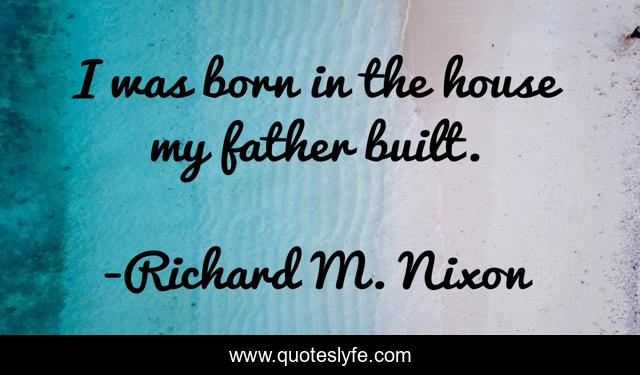 This page presents the quote "I was born in the house my father built.". Author of this quote is Richard M. Nixon. This quote is about politics, beginnings, biography, memoirs,.
