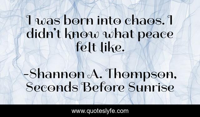 "Shannon A. Thompson, Seconds Before Sunrise Quotes." Quoteslyfe.com, 2025. Mon. 08 Dec. 2025. <https://www.quoteslyfe.com/quote/I-was-born-into-chaos-I-didn-240603>.