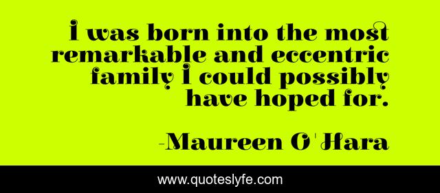 This page presents the quote "I was born into the most remarkable and eccentric family I could possibly have hoped for.". Author of this quote is Maureen O'Hara. This quote is about i was born, eccentric, born,.