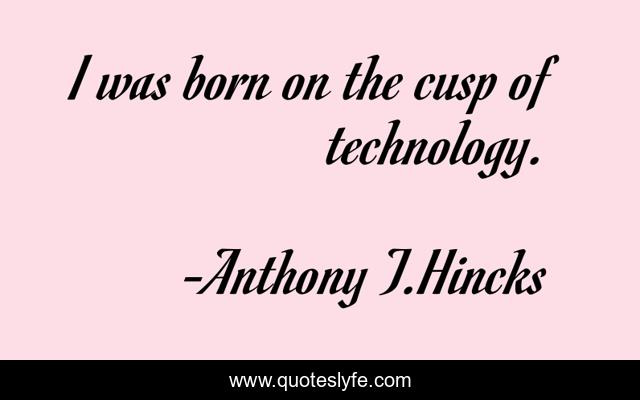 This page presents the quote "I was born on the cusp of technology.". Author of this quote is Anthony T.Hincks. This quote is about cusp, life, computers, philosophy, born, technology, cusp-of-technology,.