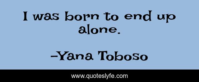 "Yana Toboso Quotes." Quoteslyfe.com, 2025. Fri. 05 Dec. 2025. <https://www.quoteslyfe.com/quote/I-was-born-to-end-up-alone-146685>.