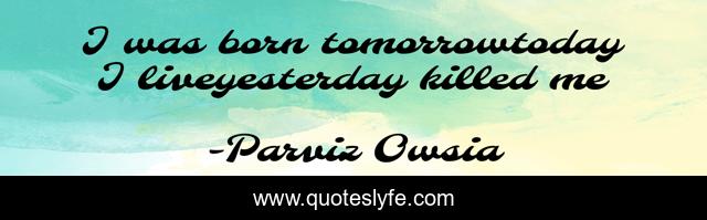 "Parviz Owsia Quotes." Quoteslyfe.com, 2025. Mon. 08 Dec. 2025. <https://www.quoteslyfe.com/quote/I-was-born-tomorrowtoday-I-liveyesterday-killed-258271>.