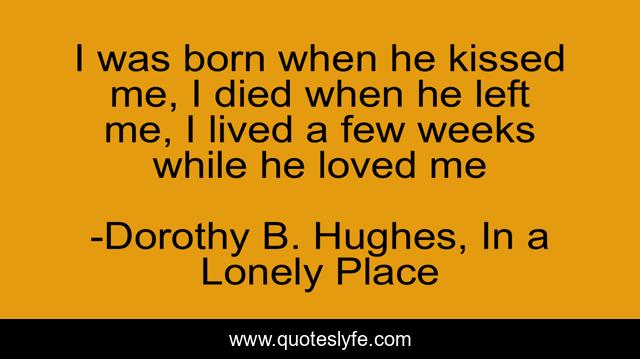 This page presents the quote "I was born when he kissed me, I died when he left me, I lived a few weeks while he loved me". Author of this quote is Dorothy B. Hughes, In a Lonely Place. This quote is about movies, love, inspirational, affection, enthusiasm,.