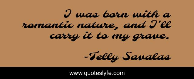 This page presents the quote "I was born with a romantic nature, and I'll carry it to my grave.". Author of this quote is Telly Savalas. This quote is about carry, born, nature,.