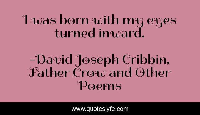 This page presents the quote "I was born with my eyes turned inward.". Author of this quote is David Joseph Cribbin, Father Crow and Other Poems. This quote is about poet, poetry-life, poetry, biography,.