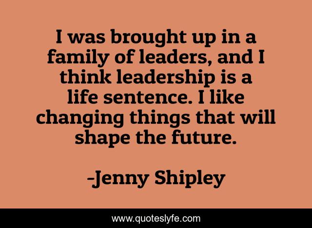 This page presents the quote "I was brought up in a family of leaders, and I think leadership is a life sentence. I like changing things that will shape the future.". Author of this quote is Jenny Shipley. This quote is about life, future, family,.
