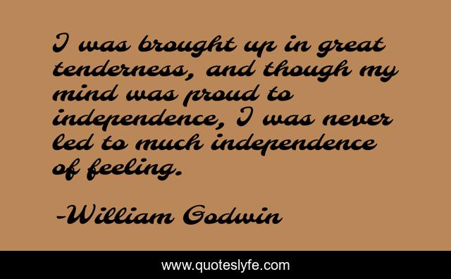 This page presents the quote "I was brought up in great tenderness, and though my mind was proud to independence, I was never led to much independence of feeling.". Author of this quote is William Godwin. This quote is about great, proud, mind,.