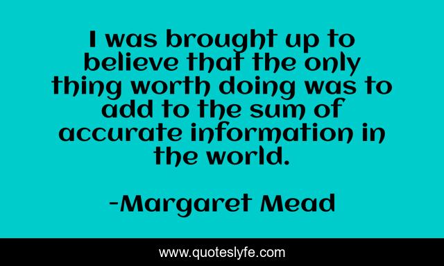 This page presents the quote "I was brought up to believe that the only thing worth doing was to add to the sum of accurate information in the world.". Author of this quote is Margaret Mead. This quote is about information, beliefs,.
