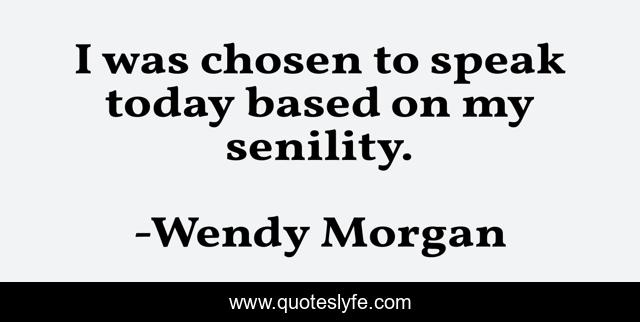 This page presents the quote "I was chosen to speak today based on my senility.". Author of this quote is Wendy Morgan. This quote is about introductions, openers,.