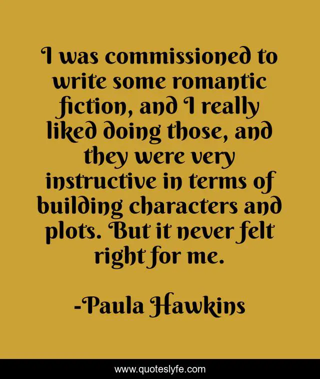 This page presents the quote "I was commissioned to write some romantic fiction, and I really liked doing those, and they were very instructive in terms of building characters and plots. But it never felt right for me.". Author of this quote is Paula Hawkins. This quote is about me, building,.