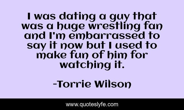 This page presents the quote "I was dating a guy that was a huge wrestling fan and I'm embarrassed to say it now but I used to make fun of him for watching it.". Author of this quote is Torrie Wilson. This quote is about fun, wrestling,.