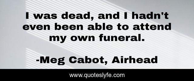 This page presents the quote "I was dead, and I hadn't even been able to attend my own funeral.". Author of this quote is Meg Cabot, Airhead. This quote is about sarcasm, funeral, death,.