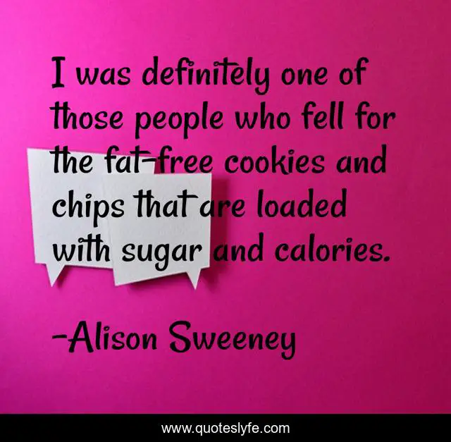 This page presents the quote "I was definitely one of those people who fell for the fat-free cookies and chips that are loaded with sugar and calories.". Author of this quote is Alison Sweeney. This quote is about cookies, people, sugar,.
