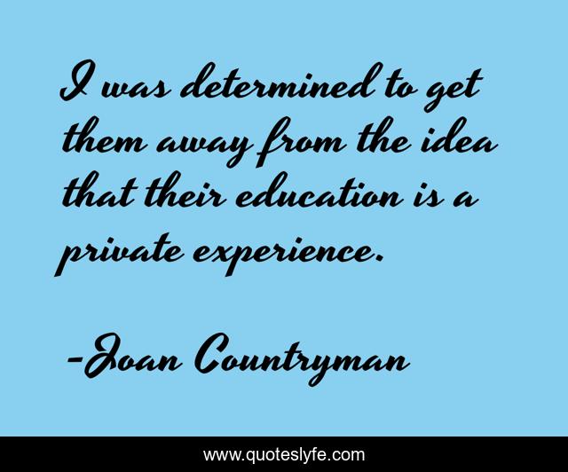 This page presents the quote "I was determined to get them away from the idea that their education is a private experience.". Author of this quote is Joan Countryman. This quote is about discipleship, education, mentor-and, cooperation,.