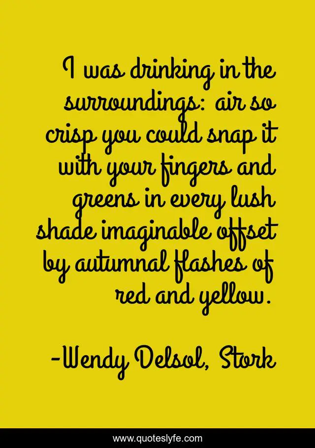 "Wendy Delsol, Stork Quotes." Quoteslyfe.com, 2025. Sat. 06 Dec. 2025. <https://www.quoteslyfe.com/quote/I-was-drinking-in-the-surroundings-air-257166>.