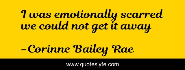 This page presents the quote "I was emotionally scarred we could not get it away". Author of this quote is Corinne Bailey Rae. This quote is about emotionally-scarred, hurt,.