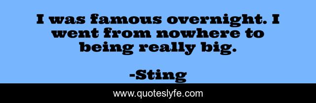 "Sting Quotes." Quoteslyfe.com, 2025. Fri. 05 Dec. 2025. <https://www.quoteslyfe.com/quote/I-was-famous-overnight-I-went-from-291876>.