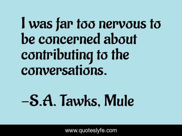 "S.A. Tawks, Mule Quotes." Quoteslyfe.com, 2025. Sun. 07 Dec. 2025. <https://www.quoteslyfe.com/quote/I-was-far-too-nervous-to-be-137283>.