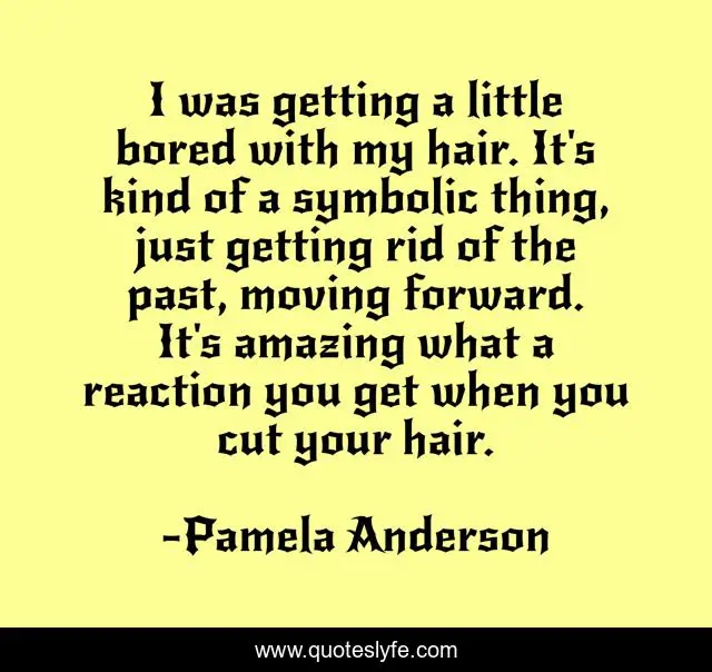 This page presents the quote "I was getting a little bored with my hair. It's kind of a symbolic thing, just getting rid of the past, moving forward. It's amazing what a reaction you get when you cut your hair.". Author of this quote is Pamela Anderson. This quote is about past, moving forward, moving,.
