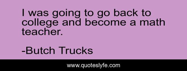 This page presents the quote "I was going to go back to college and become a math teacher.". Author of this quote is Butch Trucks. This quote is about college, back, math,.