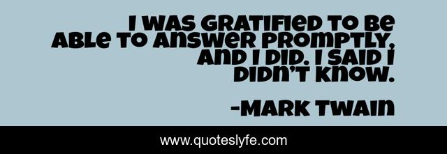 This page presents the quote "I was gratified to be able to answer promptly, and I did. I said I didn’t know.". Author of this quote is Mark Twain. This quote is about humor, knowledge,.