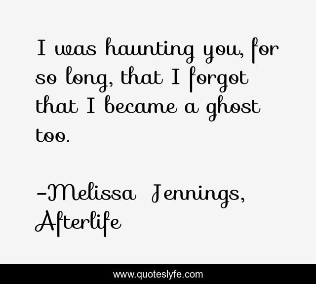 "Melissa Jennings, Afterlife Quotes." Quoteslyfe.com, 2025. Fri. 05 Dec. 2025. <https://www.quoteslyfe.com/quote/I-was-haunting-you-for-so-long-164366>.