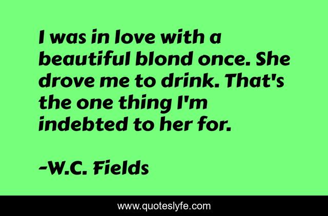 This page presents the quote "I was in love with a beautiful blond once. She drove me to drink. That's the one thing I'm indebted to her for.". Author of this quote is W.C. Fields. This quote is about men, alcohol, women,.