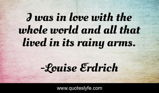 This page presents the quote "I was in love with the whole world and all that lived in its rainy arms.". Author of this quote is Louise Erdrich. .