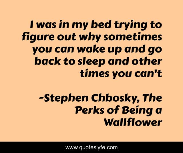 This page presents the quote "I was in my bed trying to figure out why sometimes you can wake up and go back to sleep and other times you can't". Author of this quote is Stephen Chbosky, The Perks of Being a Wallflower. .