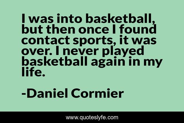 This page presents the quote "I was into basketball, but then once I found contact sports, it was over. I never played basketball again in my life.". Author of this quote is Daniel Cormier. This quote is about life, basketball, my life,.