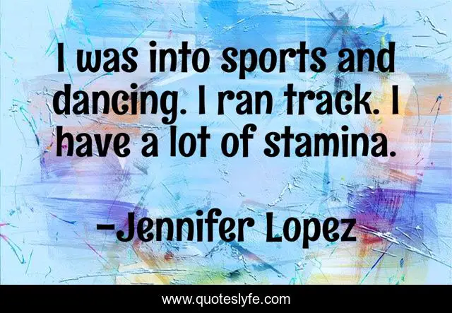 This page presents the quote "I was into sports and dancing. I ran track. I have a lot of stamina.". Author of this quote is Jennifer Lopez. This quote is about track, stamina, dancing,.